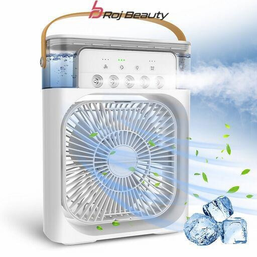 پنکه مه پاش رومیزی مدل Air Cooler Fan فاقد باتری است و به صورت مستقیم توسط آداپتور و کابل USB Type C به برق متصل میشود. دارای پنج نازل مه پاش قوی و قابلیت تنظیم تعداد مه پاش ها است. دارای پد خوشبو کننده و تایمر جهت خاموشی خودکار می باشد. فن دستگاه قابلیت تنظیم دستی و چرخش 360 درجه در یک جهت را دارد و محافظ فن دارای قابلیت باز و بسته شدن جهت نظافت پره ها میباشد. ترجیحا از آب تصفیه شده درون دستگاه استفاده شود جهت جلوگیری از رسوب.