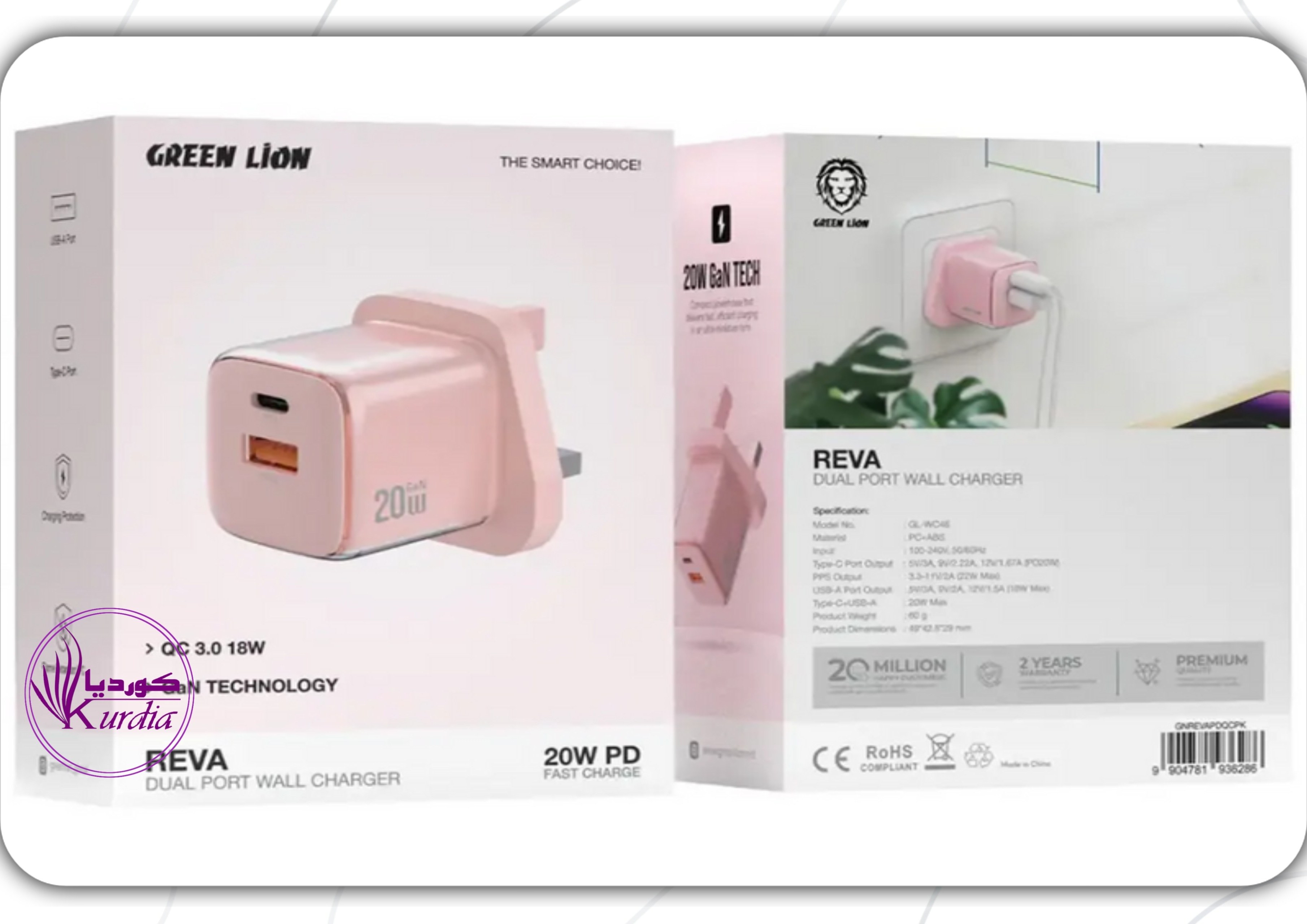 Green Lion Reva Dual Port Wall Charger PD +QC 2 0W