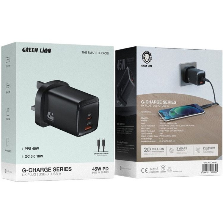 5V/3A, 9V/3A, 12V/3A, 15V/3A, 20V/2.25A (PD45W)